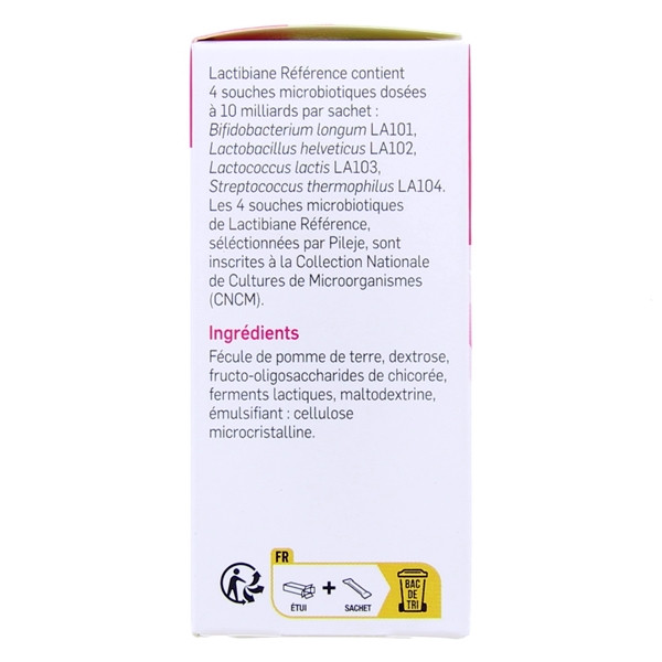Lactibiane Référence est un complément alimentaire formulé avec 4 souches microbiotiques dosées à 10 milliards par sachet, rigoureusement sélectionnées pour leurs effets physiologiques et leur totale innocuité :