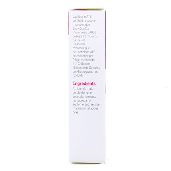 Lactibiane ATB du laboratoire Pileje est composé de la souche microbiotique Lactobacillus rhamnosus LA801 dosée à 12 milliards par gélule.