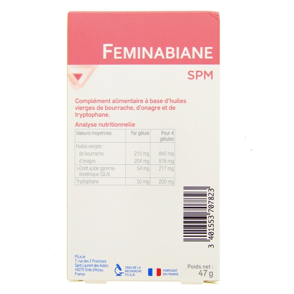 Feminabiane SPM du laboratoire Pileje est un complément alimentaire formulé à base d'huiles vierges de bourrache, d'onagre et de tryptophane.