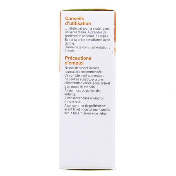 1 gélule par jour, à prendre avec un verre d'eau, de préférence pendant les repas.