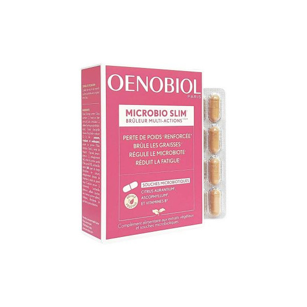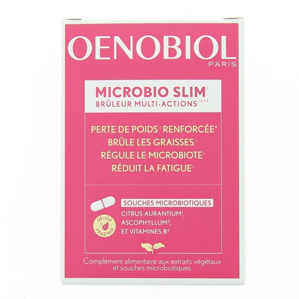 Oenobiol Microbio Slim est un complément alimentaire brûleur de graisses multi-actions. Sa formule aide à mincir naturellement tout en prenant soin du corps et sans mettre l'organisme à l'épreuve.