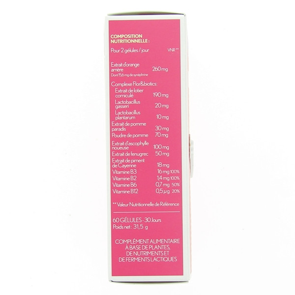 - Brûler les graisses et renforcer la perte de poids. Le Citrus Aurantium contribue à la gestion du poids, aide à maintenir des tissus adipeux sains, favorise la dégradation des lipides ainsi que le métabolisme des lipides et des glucides. Le Fenugrec aide à soutenir et équilibrer le métabolisme des graisses et contribue au métabolisme normal du glucose. L'Ascophyllum aide à diminuer l'absorption des graisses et à éliminer leur dépôt et aide à contrôler le poids.
