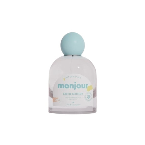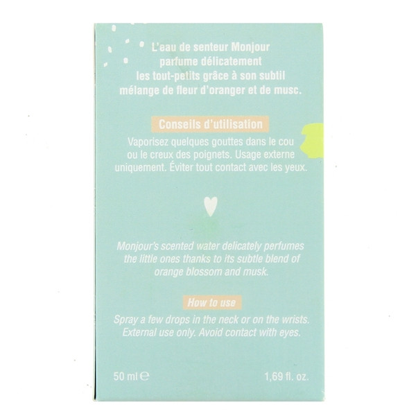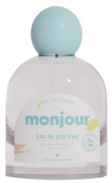 L'Eau de Senteur de la marque Monjour est formulé sans alcool, à base de 98 % d'ingrédients d'origine naturelle. Cette eau de senteur parfume délicatement les tout-petits, dès la naissance, grâce à son subtil mélange de fleur d'oranger et de musc.