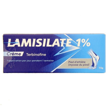 Lamisilate 1% est une crème indiquée contre les mycoses du pied, aussi appelé "Pied d'athlète". Disponible en tube de 7,5g sous forme de crème, Lamisilate 1% crème doit être appliqué une fois par jour pendant une semaine.