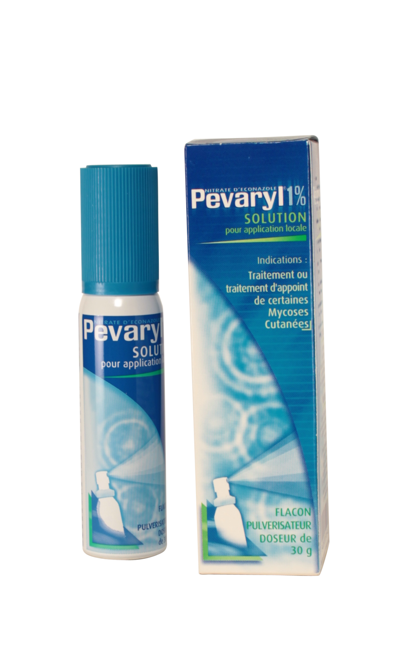 Le Pevaryl spray est dosé à 1%. Ce médicament est recommandé pour le traitement des mycoses. Disponible sans ordonnance, le spray Pevaryl 1% peut être acheté en ligne, après consultation de la notice, sur notre pharmacie en ligne. En cas de persistance des symptômes, l'avis d'un médecin est nécessaire. IllicoPharma propose le Pevaryl 1% en spray en flacon de 30 grammes.