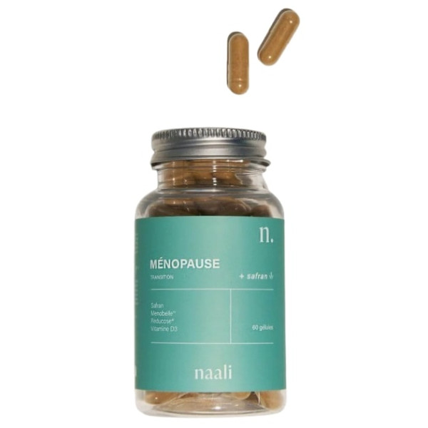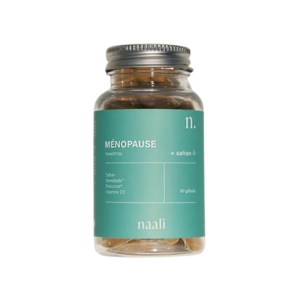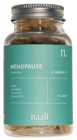 Le complément alimentaire Ménopause de la marque Naali est formulé à base de Safran pour soutenir les femmes avant, pendant et après la ménopause. Il contribue à réduire les bouffées de chaleur, les sueurs nocturnes, la fatigue, la mauvaise humeur et la prise de poids.
