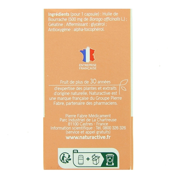 Les capsules d'Huile de Bourrache du laboratoire Naturactive contribuent à la souplesse et à l'élasticité de la peau.