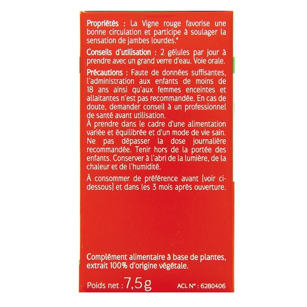 Vigne Rouge Bio du laboratoire Naturactive favorise une bonne circulation et participe à soulager la sensation de jambes lourdes.