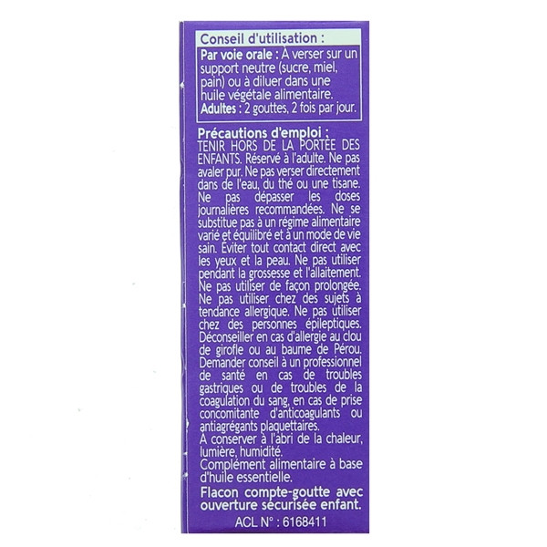 Cette huile est déconseillée pendant la grossesse et en période d’allaitement. Ce produit de Naturactive ne convient pas aux enfants de moins de 6 ans. Il en est de même pour les personnes épileptiques ou ayant des antécédents de convulsions. Son usage n’est pas recommandé aux individus qui sont allergiques à des composants du produit.