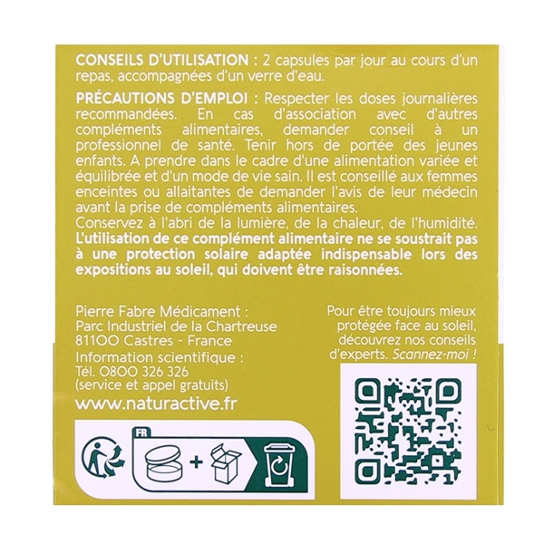 Doriance Capital Soleil de Naturactive est un complément alimentaire à base d'actifs végétaux qui améliore le capital soleil et aide à combattre les signes visibles du photo-vieillissement.