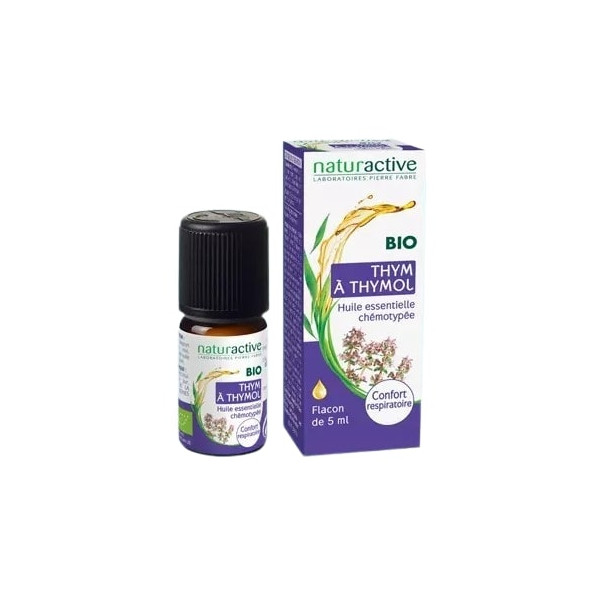 L'huile essentielle de Thym à Thymol Bio des laboratoires Naturactive est indiquée pour le confort respiratoire. Elle peut être conseillée à l’arrivée de l’hiver pour contribuer à maintenir actif le système immunitaire face aux virus et bactéries.