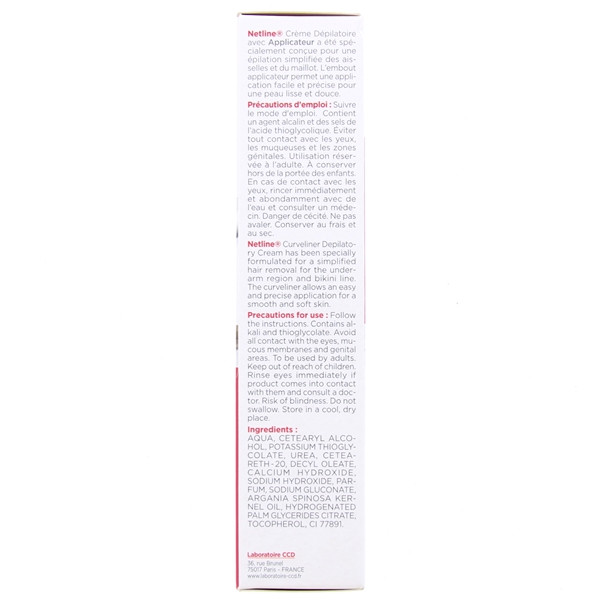 La crème dépilatoire Netline avec Applicateur des laboratoires CCD permet d'épiler efficacement, facilement et précisément les poils des aisselles et du maillot.