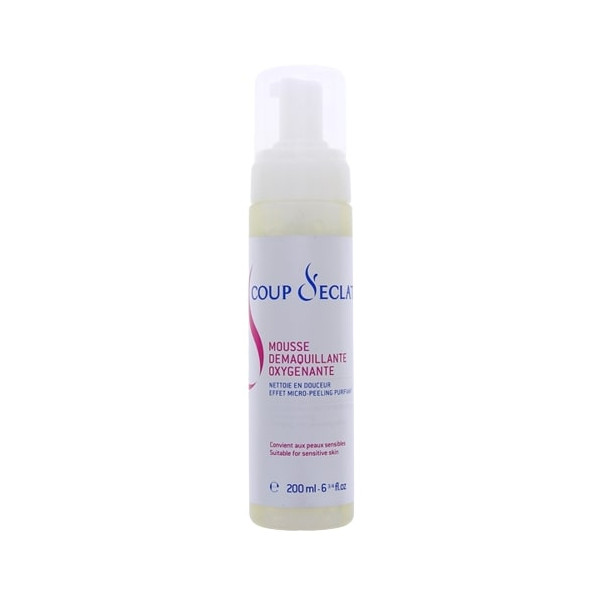 La mousse démaquillante et oxygénante de la marque Coup d'Eclat contient des actifs aux propriétés absorbantes, purifiantes et ultrahydratantes sur la peau.