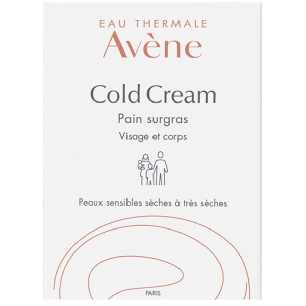 Les laboratoires Avène fabriquent le pain cold crème pour l’hygiène au quotidien des peaux sèches, sensibles et très sèches. Disponible en pain de toilette de 100 g, dans un étui en carton.