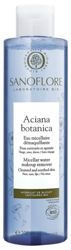 L'eau micellaire démaquillante Bio Aciana Botanica de Sanoflore est efficace pour nettoyer, démaquiller et apaiser la peau du visage, des yeux et des lèvres.
