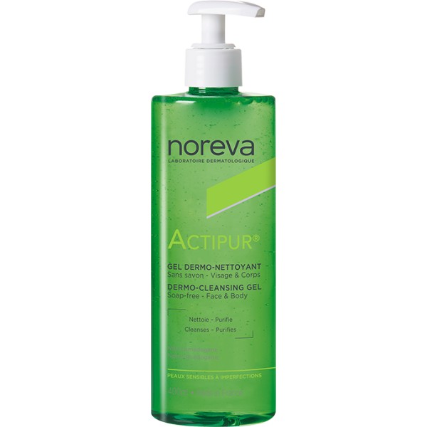 Élaboré par les laboratoires Noreva, le gel dermo-nettoyant Actipur existe en flacon pompe de 400 ml.