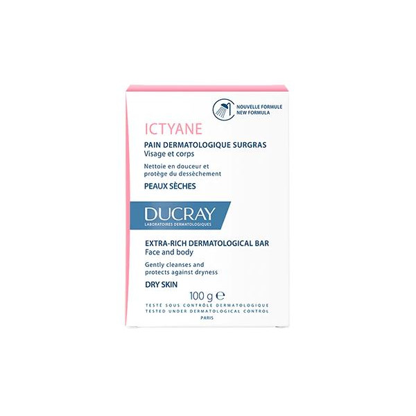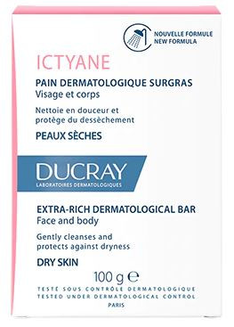 Le pain dermatologique Ictyane de la marque Ducray nettoie et hydrate efficacement les peaux fragiles et sèches. Il répare le film hydolipidique et assouplit la peau.