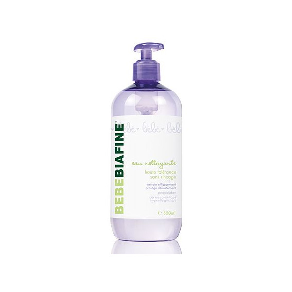 L'eau nettoyante BebeBiafine des laboratoires Biafine a été spécialement élaborée pour nettoyer et protéger la peau délicate de bébé contre les sources d'irritation au quotidien. Formulée sans phtalate, sans paraben, sans colorant, sans savon et sans alcool, elle est hypoallergénique. Ses principes actifs participent à l'élimination en douceur des traces d'impuretés tout en apaisant, hydratant et préservant la peau de bébé. Ce produit est disponible en flacon pompe de 500 ml.