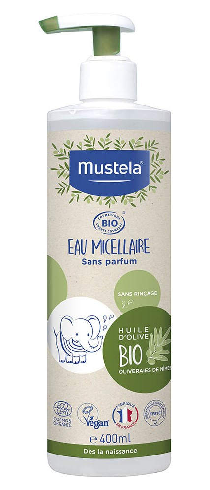 L'eau micellaire Bio de Mustela est disponible en flacon de 400ml.