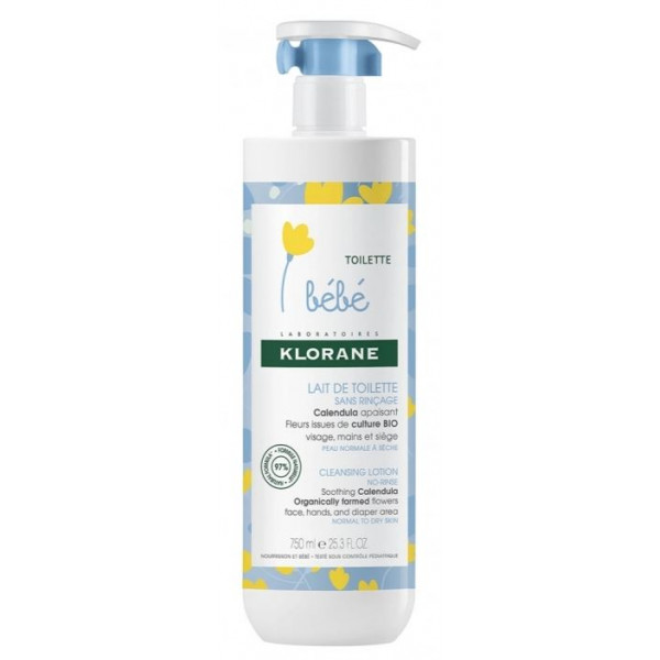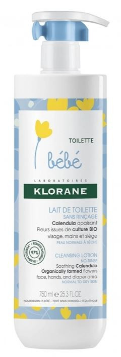 Le lait de toilette protecteur sans rinçage Klorane Bébé nettoie en douceur, il est hydratant, apaisant et réparateur. Il restaure l'équilibre physiologique de la peau. Sans paraben, sans alcool.
