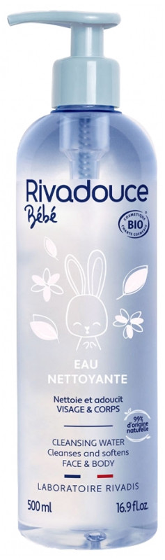 L'Eau Nettoyante Bio pour les bébés du laboratoire Rivadouce nettoie et adoucit en délicatesse la peau fragile du corps et du visage des tout-petits.