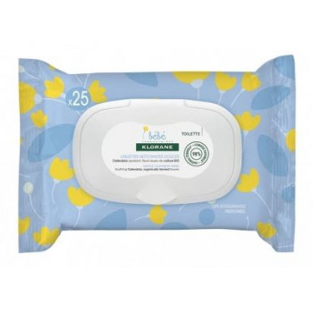 Extra douces et enrichies en extrait de Calendula KLORANE protecteur, apaisant et réparateur, ces lingettes offrent la garantie d'une toilette efficace. Très résistantes et pratiques, elles nettoient efficacement en un seul geste le visage et les mains de bébé. Imprégnées de Lait de toilette sans rinçage, elles laissent sa peau propre, douce et délicatement parfumée. Convient également au démaquilalge de maman. En fibres 100% biodégradables elles sont respectueuses de l'environnement.