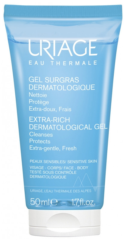 Le Gel Surgras Dermatologique des laboratoires français Uriage est présenté en tube de 50 ml. Son format voyage le rend pratique.