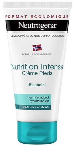 Les actifs qui caractérisent la crème nutrition intense pieds secs et abîmés de la marque Neutrogena nourrissent, adoucissent et hydratent la peau pendant 24 h.