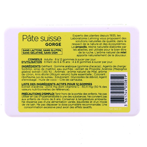 Les actifs naturellement présents dans le miel et la propolis qui composent la Pâte Suisse Gorge Lehning calment et adoucissent rapidement les maux de gorge.