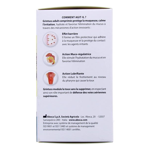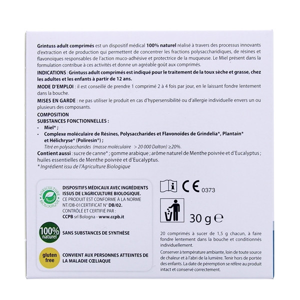 Grâce à ces caractéristiques, Grintuss Adult est adapté à tous et peut-être également utilisé par les personnes âgées, les personnes atteintes de la maladie cœliaques, les femmes enceintes et durant l’allaitement, après consultation médicale.