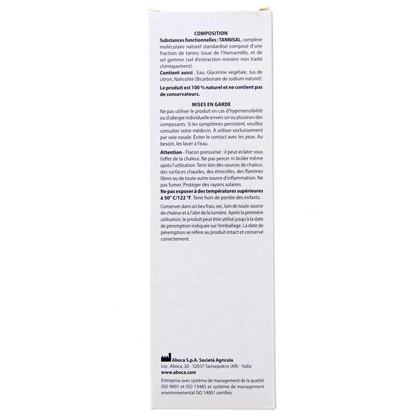 Substances fonctionnelles : TANNISAL, complexe moléculaire standardisé composé d’une fraction de tanins (issue de l’Hamamélis), et de sel gemme (sel d'extraction minière non traité chimiquement).