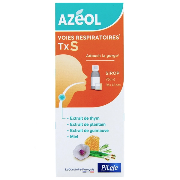 Le complément alimentaire Azéol sirop toux sèche est un produit de la gamme Azéol du laboratoire Pileje. Issu de la recherche Pileje, ce produit est fabriqué en France. Il est présenté en flacon de 75 ml. Un flacon doseur de contenance de 5 ml est fourni.