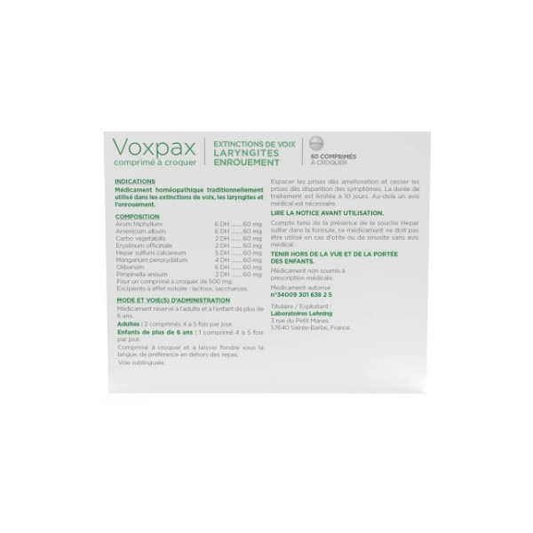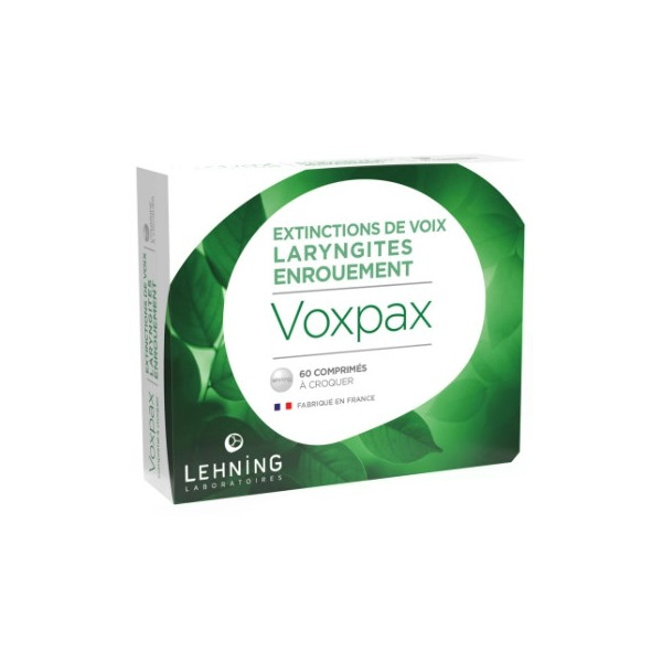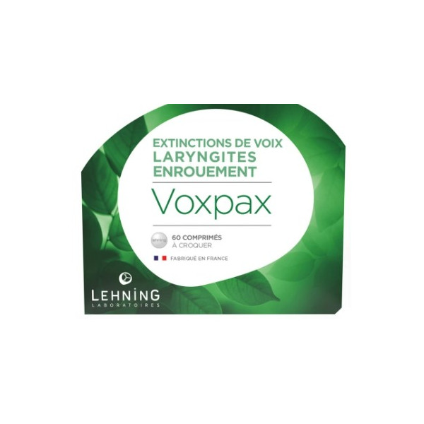 Voxpax est un médicament homéopathique des laboratoires Lehning indiqué en cas d'extinctions de voix, de laryngites et d'enrouement.