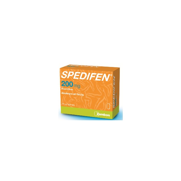 Spedifen est un médicament à base d'ibuprofène. Spedifen est indiqué en cas de fièvre ou de douleurs. Chaque comprimé de Spedifen 200mg contient 200mg d'ibuprofène.