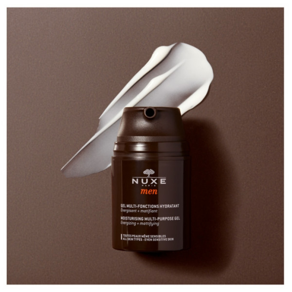 Men Gel Multi-Fonctions Hydratant de la marque Nuxe est un soin du visage pour homme qui hydrate, énergise et matifie les zones à tendance grasse. Les marques de fatigue et de stress sont réduites et la peau retrouve confort et douceur.