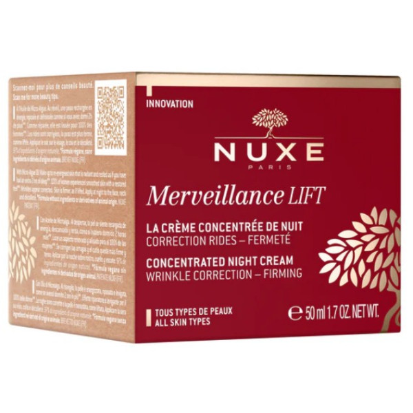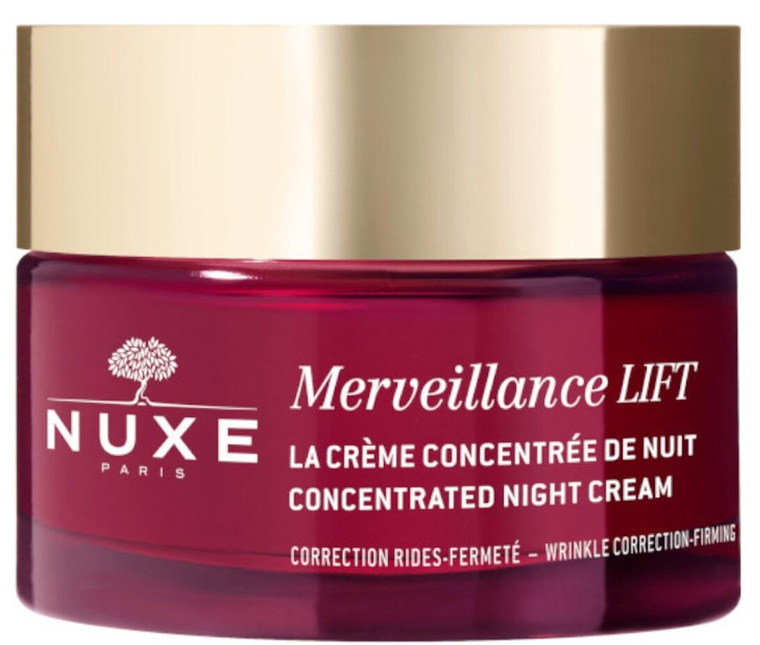 Merveillance Lift La Crème Concentrée de Nuit de la marque Nuxe diffuse ses bienfaits pour la peau à un moment clé de la régénération cellulaire. Au réveil, la peau est rechargée en énergie, les rides sont corrigées et la peau est comme liftée.