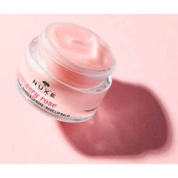 Very Rose Baume Lèvres à la Rose de la marque Nuxe hydrate, sublime et adoucit les lèvres sèches à très sèches. Il laisse un délicat éclat rosé et peut s'appliquer avant le rouge à lèvres pour améliorer sa tenue et aider à conserver des lèvres lissées.