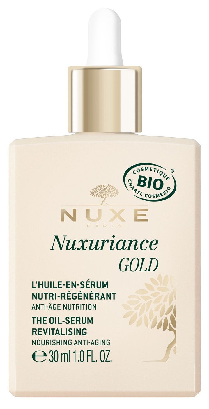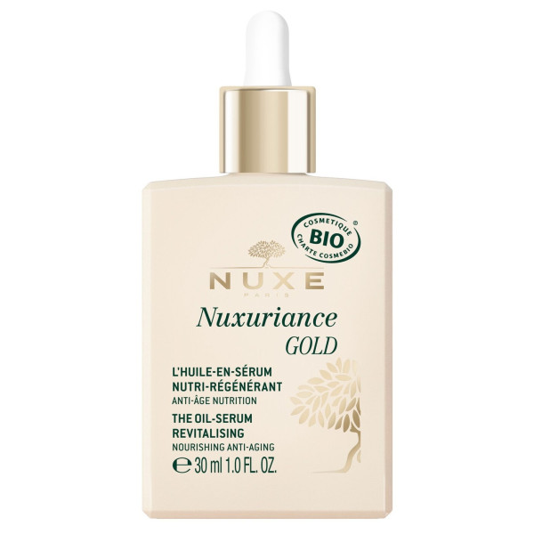 Nuxuriance Gold L'Huile-En-Sérum Nutri-Régénérant de la marque Nuxe est destiné aux peaux sèches fragilisées par l'âge. Elle possède une action anti-âge nutrition pour régénérer, assouplir, adoucir et illuminer la peau.