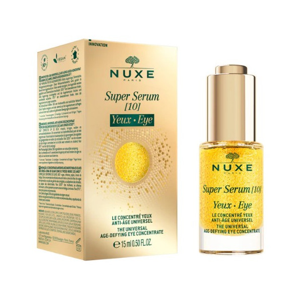 Super Serum [10] Yeux Le Concentré Yeux Anti-Âge Universel de la marque Nuxe offre une correction 360° pour un regard lissé et défatigué. Ce sérum corrige les rides, les cernes et les poches.
