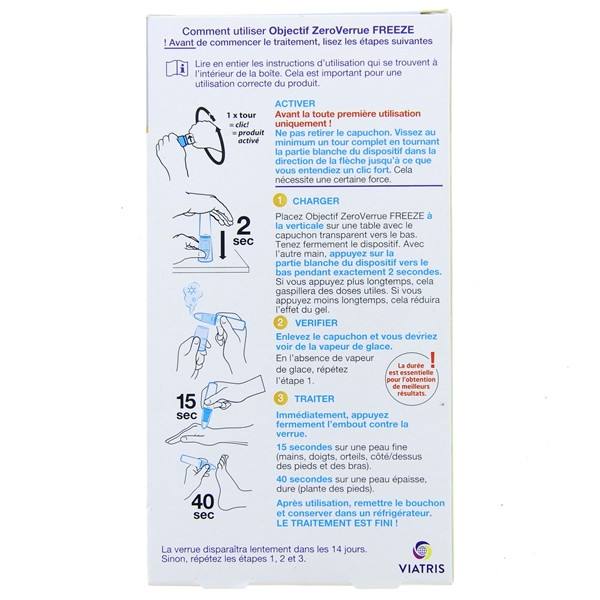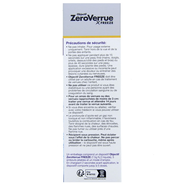 - Objectif zeroVerrue FREEZE doit être utilisé par un adulte en cas de traitement de verrues chez l'enfant.