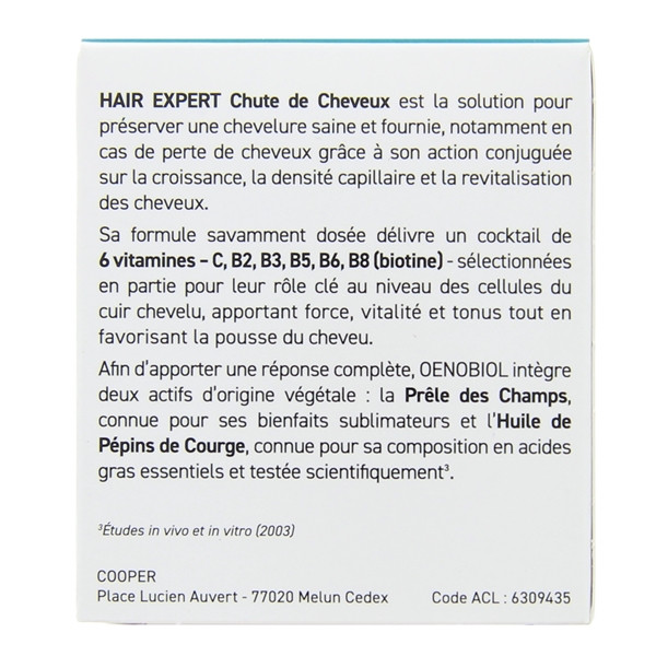 Oenobiol Hair Expert Chute de Cheveux est un complément alimentaire indiqué pour lutter contre la chute de cheveux, favoriser la croissance et favoriser la densité des cheveux.