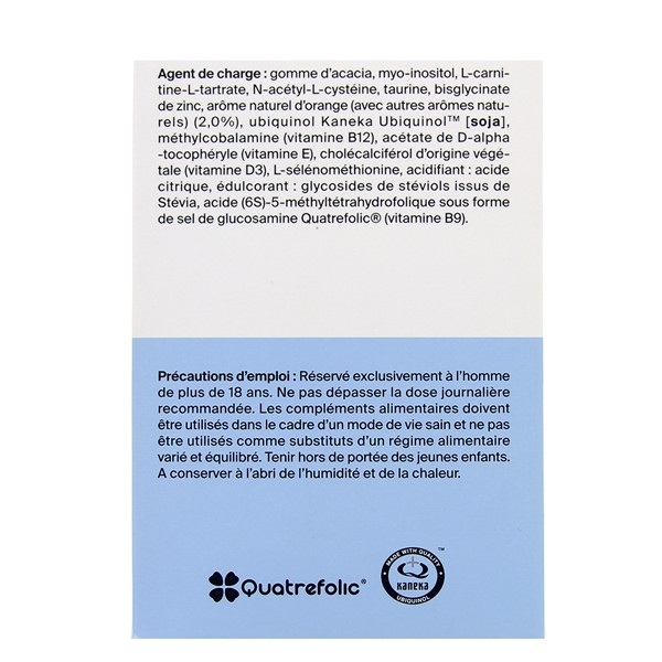 Indication : complément alimentaire pour favoriser la fertilité masculine. Pour adultes.