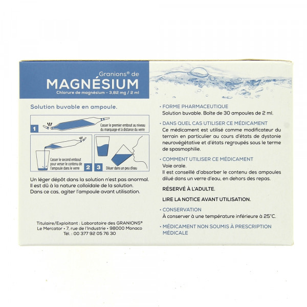 Le contenu de l'ampoule doit être dilué dans un verre d'eau et avalé en dehors des repas.