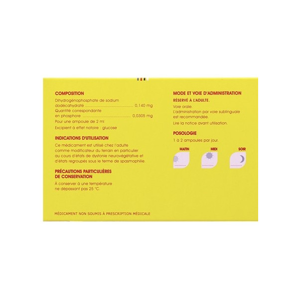 La solution est prise par voie sublinguale, de préférence le matin à jeun ou éventuellement 15 minutes avant un repas ou le soir au coucher : garder le contenu de l'ampoule sous la langue 1 à 2 minutes avant de l'avaler.
