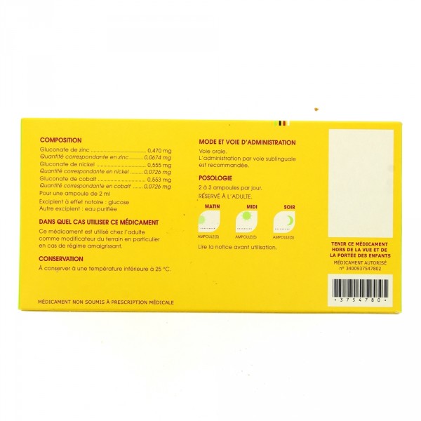 La solution est prise par voie sublinguale de préférence le matin à jeun ou éventuellement 15 minutes avant un repas ou le soir au coucher : garder le contenu de l'ampoule sous la langue 1 à 2 minutes avant de l'avaler.