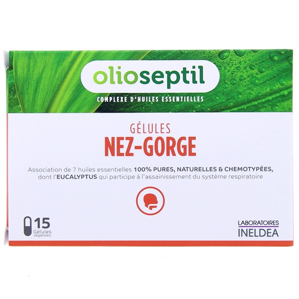 OLIOSEPTIL « Nez - Gorge » est une formule à base d’huiles essentielles qui contient, entre autres, de l’huile essentielle extraite d’eucalyptus globulus pour assainir le système respiratoire, notamment le nez, et pour apaiser la gorge.