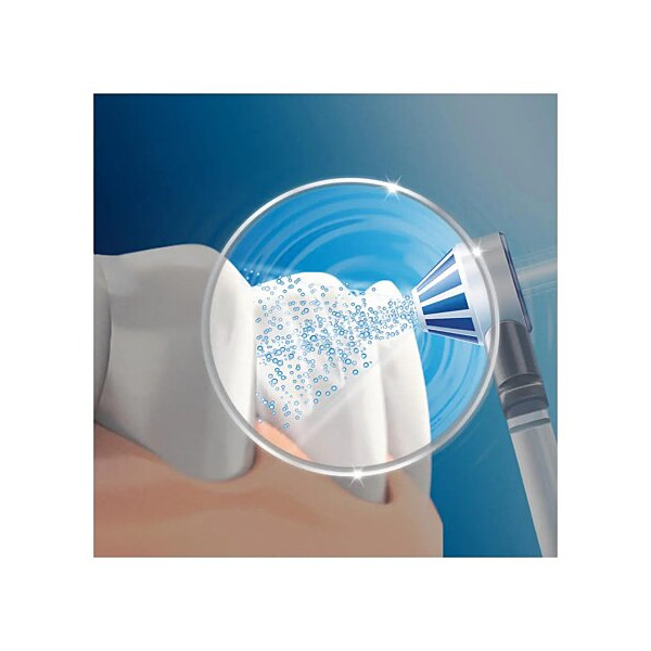 Oral-B Hydropulseur Oxyjet aide à préserver la santé des gencives grâce à un nettoyage ciblé et en profondeur des dents pour déloger les résidus alimentaires. L’utilisation de cet accessoire en complément du brossage améliore l’hygiène bucco-dentaire.