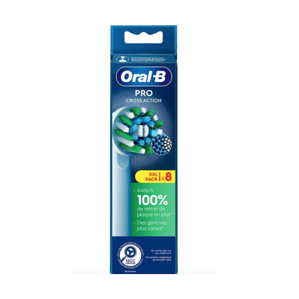 Le modèle de brossette Cross Action fait partie de la gamme Pro d’Oral-B, 8 têtes de brossettes conçues pour combattre les plaques dentaires et pour améliorer la santé et l’hygiène bucco-dentaire.