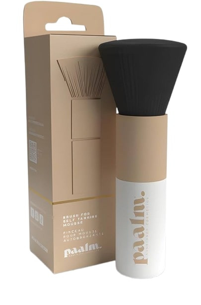 Le pinceau kabuki de la marque Paalm Cosmetics permet d'appliquer facilement, uniformément et sans traces la mousse autobronzante medium ou dark sur le visage et les zones difficiles. Son format est ultra-compact pour se glisser facilement dans n'importe quel sac ou trousse.