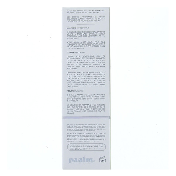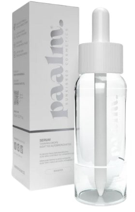 Le Sérum Gouttes Autobronzantes de la marque Paalm Cosmetics se mélange avec l'Hydramilk ou une crème hydratante pour obtenir un teint naturellement bronzé sur mesure. Il suffit de doser le nombre de gouttes (3 à 6) pour obtenir la teinte désirée.